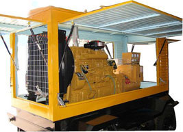 海兴柴油发电机组/移动柴油发电机组设计独具创新,机动性高、重心低、制动安全、制造精良、外形美观。 海兴拖车车架采用槽梁焊接成框架结构,节点选择合理、强度高、刚性好;同时装有钢板弹簧悬架结构;拖车采用高度可调节插销式牵引架,适用于各种高度牵引车;采用圆形钢管焊接直通式车轴,结构紧凑,安全可靠;车架四角设有机械式支撑装置,配备惯性行车制动、驻车制动和脱离应急制动,确保机组在各种状况下的安全;车架前端设有支撑轮,具备承受机组垂直载荷的功能的同时还具备导向功能;整车配备转向和刹车指示灯,同时装有尾灯标准插头